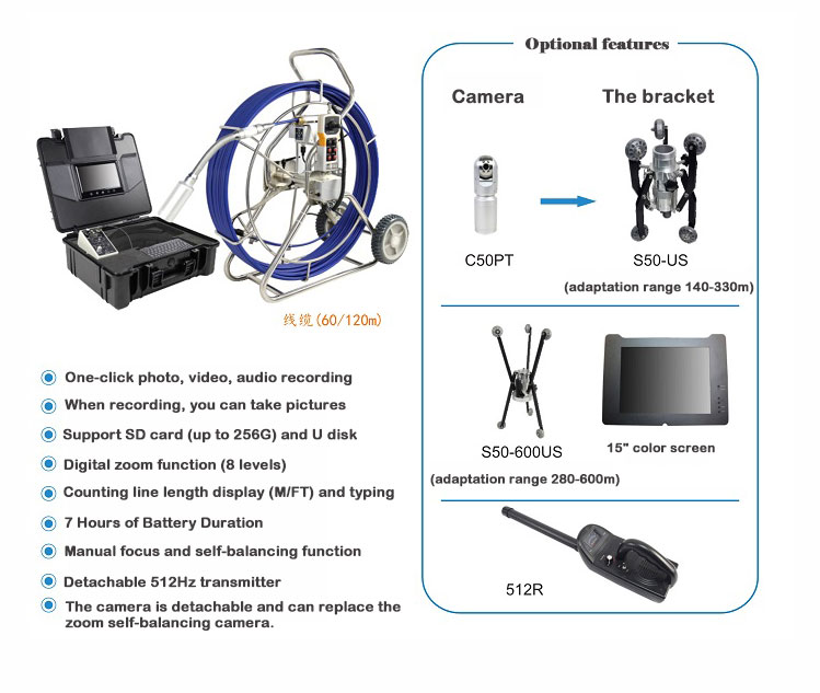 The main parameters of the 60m/120m pipeline endoscope are as follows: